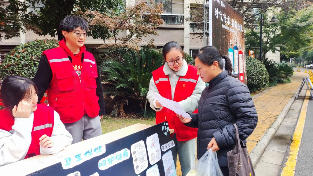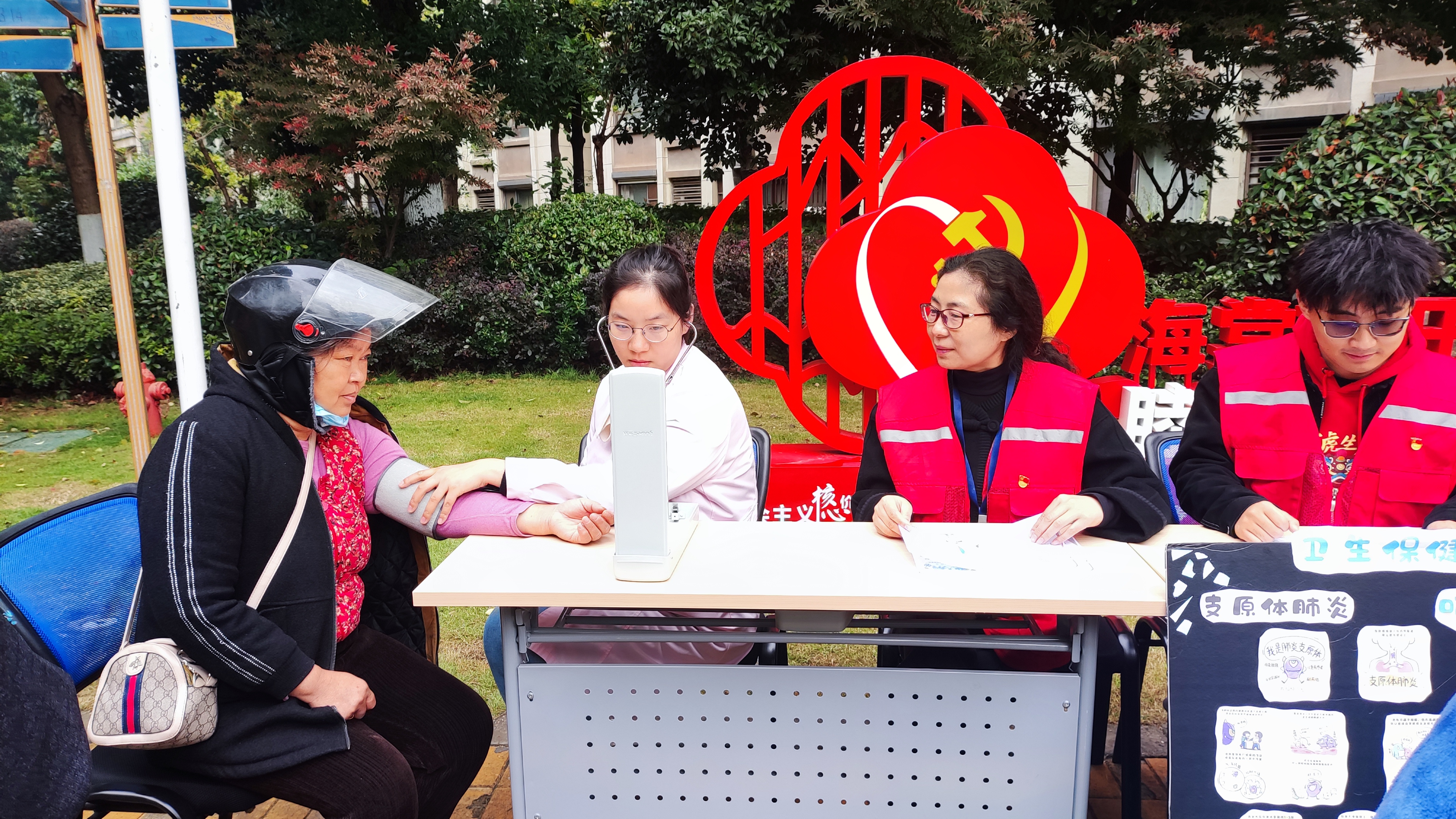 活动中,党团员教师代表和保健老师进入中海御景湾社区,开展了一系列的宣讲活动。此次活动围绕简单的育儿知识、传染病的起因、症状表现、以及预防治疗等方面进行,教师们向社区居民细致讲解了各类传染病的传播途径及危害,并且从生活细节入手介绍了防范传染的措施;保健老师现场为社区居民测量血压,宣传健康的重要性。