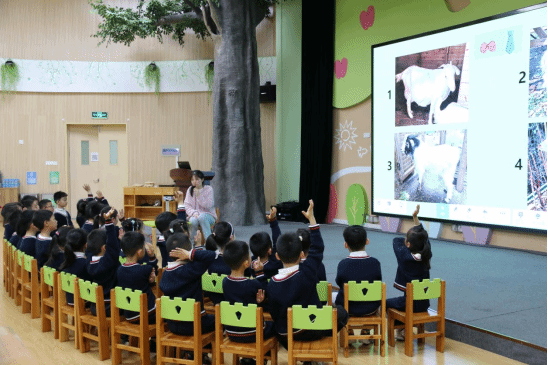本次活动中,常青实验幼儿园的孩子们围绕“羊”资源发出小羊出生、照顾小羊的创生性主题课程,感知到生命的奥秘,了解动物的习性,在照顾小羊过程中培养了自己的爱心与责任心。活动开始,为体现课程理念,蔡晓云、王佳雯两位老师,分别开展大班科学《羊爸爸和羊妈妈》、大班语言《小羊的一家》集体活动;接着,老师们对大班年级组各班级开展的围绕“羊”区域游戏活动,进行了全面细致的观摩学习;最后,由王斯宜、丁伟婕两位老师,分别就《春日“羊”趣》——小班课程故事、《你好,小羊》——大班课程故事进行了经验分享。