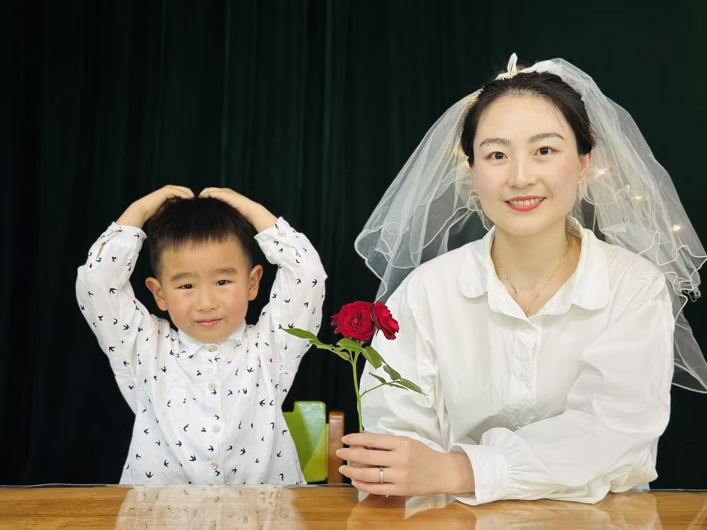 活动中,孩子们倾听了绘本《爱,要大胆地说出来》,了解妈妈对自己的爱是无私的、深沉的,是生活中最温暖的力量;孩子们还为妈妈们准备了母亲节限定盲盒和创意拼画《人生第一张照片》,每一份礼物都充满了孩子们对妈妈的爱和感激;最后,孩子们为妈妈们献上了手势舞表演《游子吟》和母亲节祝福视频,并和妈妈们互相为对方戴上头纱或领结。