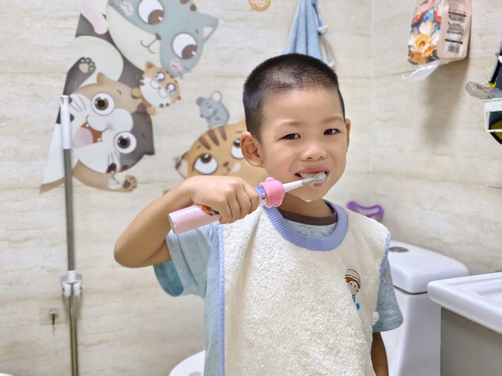 活动开始,保健老师带来《我会刷牙》保健课,借助牙齿模型,用童趣语言讲解牙冠、牙颈、牙根的结构,以及龋齿形成原因,并现场演示巴氏刷牙法,强调“早晚各刷3分钟”的重要性;随后,教师讲述《小熊不刷牙》等绘本,幼儿在故事中知晓不刷牙的危害;接着的是集体表演儿歌《学刷牙》、科学小实验,小朋友们在唱跳和科学实验中,直观了解甜食对牙齿的腐蚀,加深护牙认知;最后,家长与幼儿共同创作护牙海报、制作手工牙刷,并参与 “21 天刷牙打卡”,班级各区域也投放牙齿相关材料,让护牙教育融入日常。