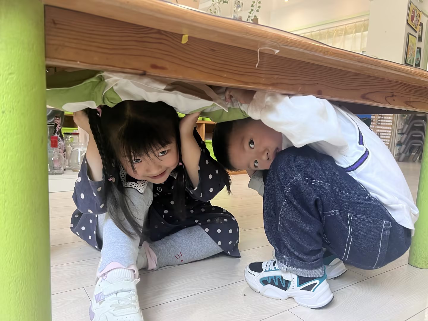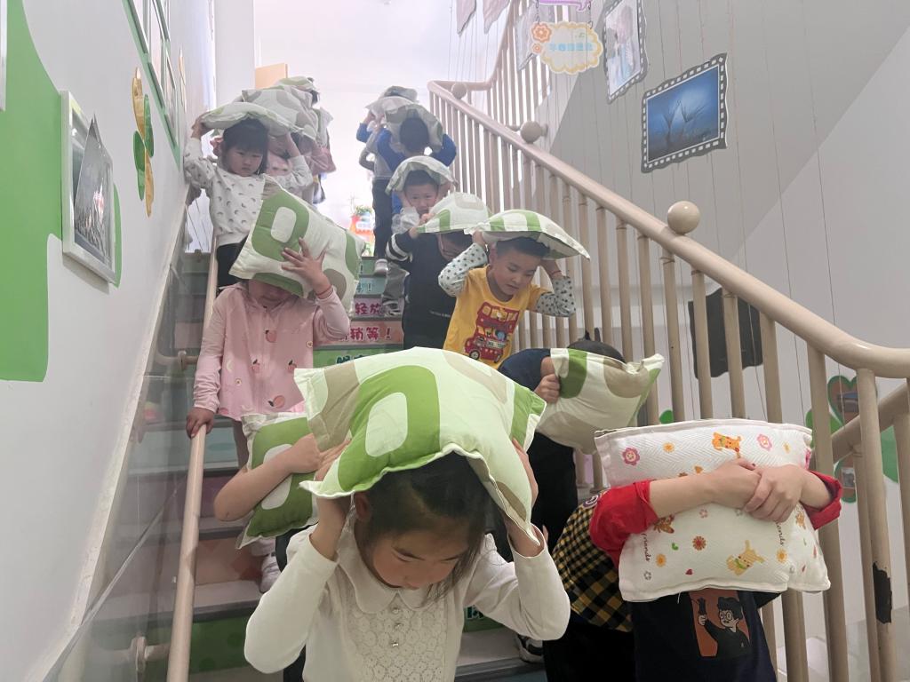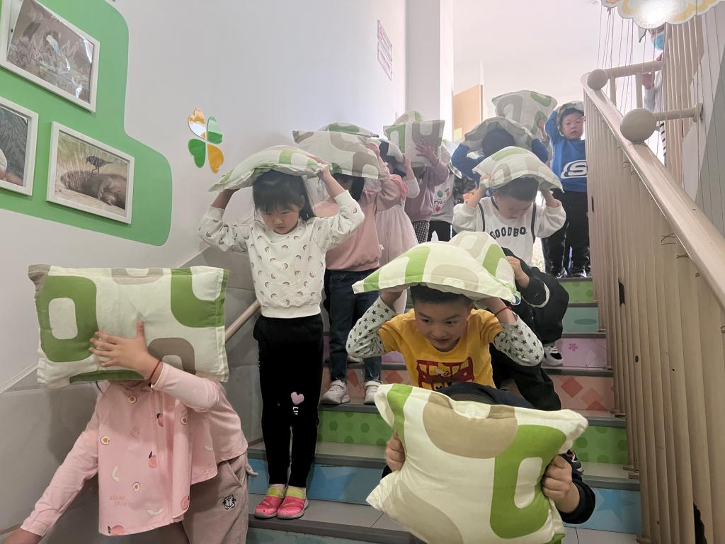 在演练前,教师组织幼儿学习关于地震逃生的相关知识,进一步明确疏散集合地点、疏散顺序和注意事项。在演练过程中,全园师生服从指挥,听从命令,在第一次警报响起后迅速躲到室内安全的避险位置,第二次警报响起后立即快速、安全的疏散到户外空旷场地,到达目的地后迅速清点人数并汇报,总指挥对此次演练进行了总结。