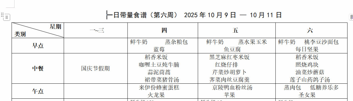 下一篇:幼儿第五周食谱2025年9月29日~9月30日