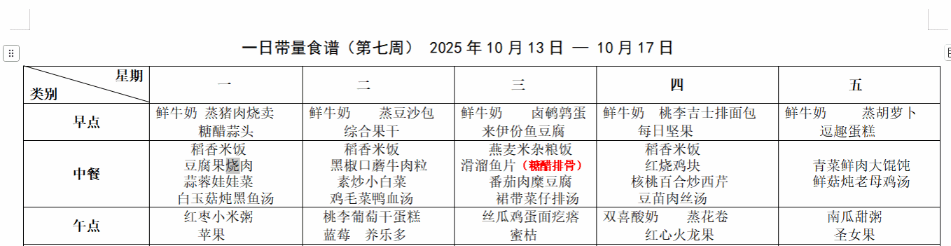 下一篇:幼儿第六周食谱2025年10月9日~10月11日