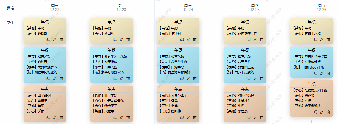 幼儿第十六周食谱(2025年12月15日~2025年12月19日)