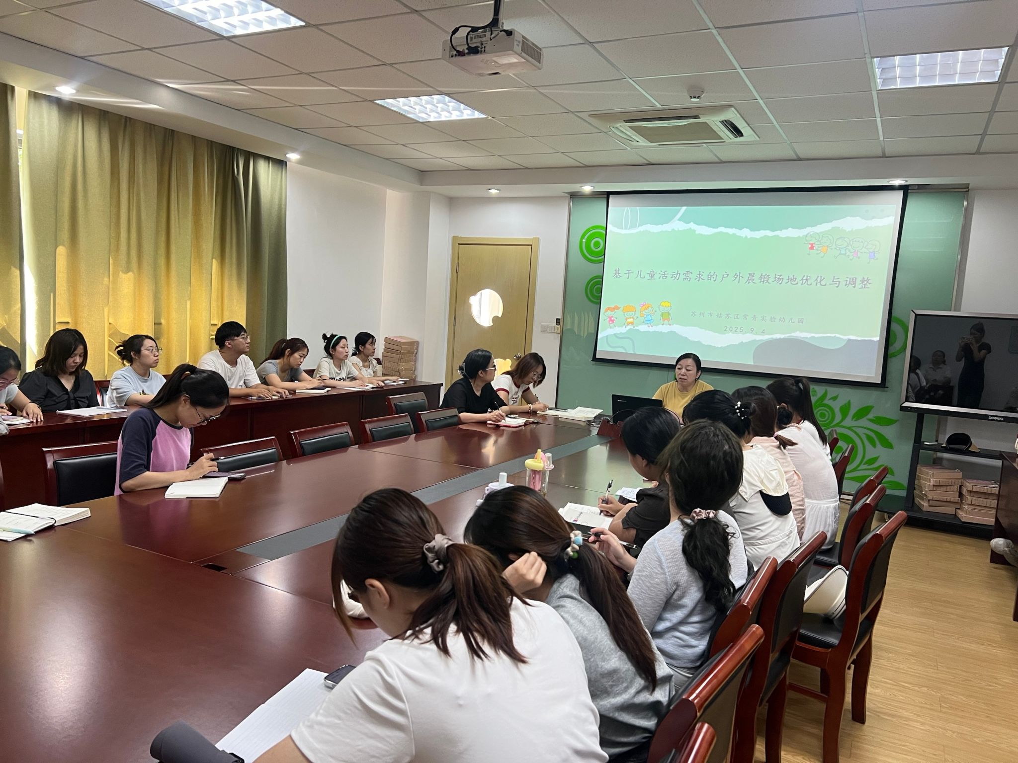 为充分发挥户外晨锻场地的教育价值,满足幼儿多样化活动需求,今日,苏州市姑苏区常青实验幼儿园组织全体教师开展“基于儿童活动需求的户外晨锻场地优化与调整”专题教研活动。