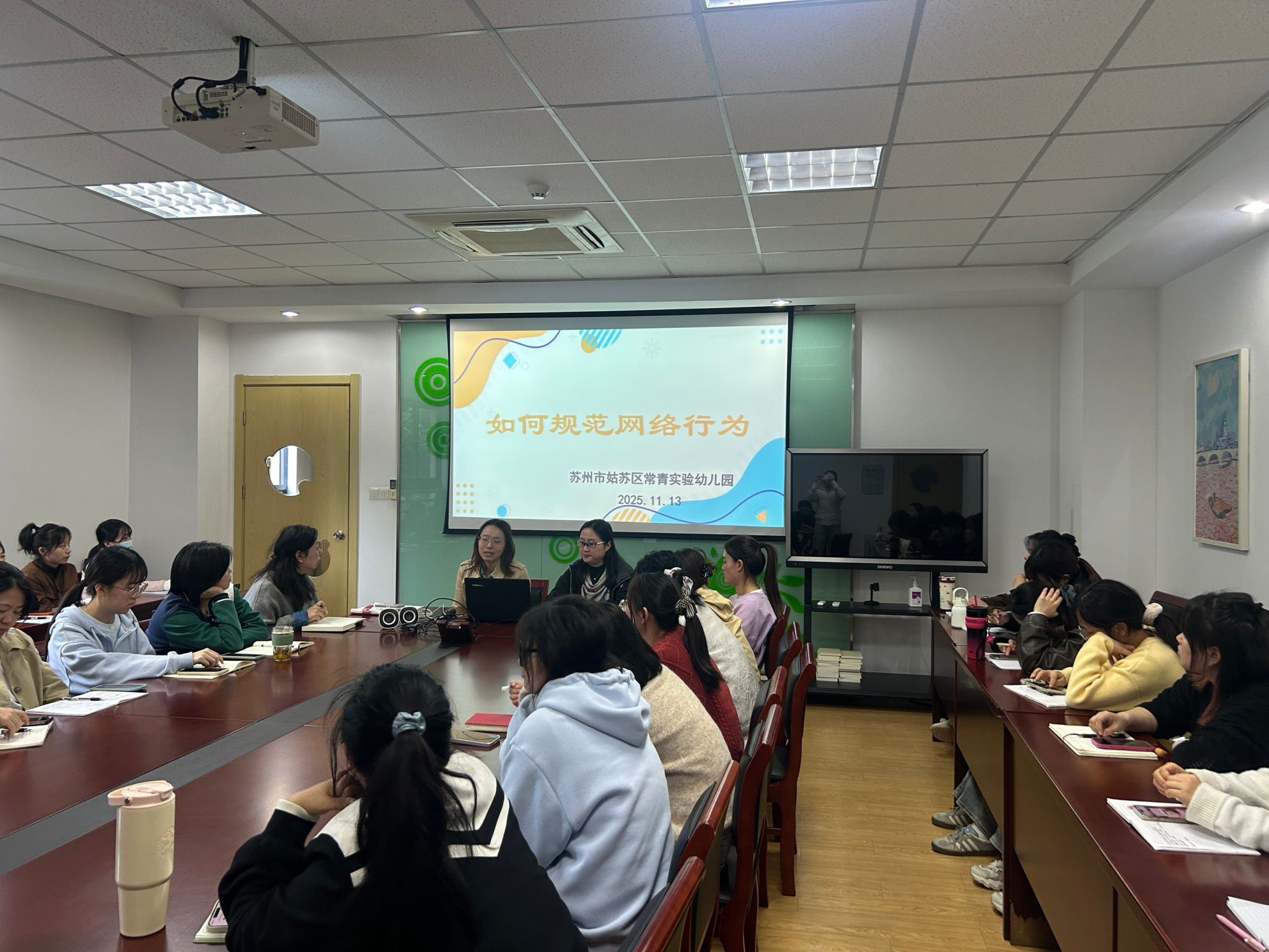 为提升教师网络素养,筑牢校园网络安全防线,今日,苏州市姑苏区常青实验幼儿园围绕“如何规范网络行为”开展专题教研活动。 活动开始,王园带领全体教师结合校园网络安全案例,剖析办公网络使用、家校群沟通等场景中的风险点;随后,教师们围绕“幼儿网络安全教育实施路径”“不良信息应急处置方法”等议题分组讨论,结合小班幼儿认知特点,提炼出“儿歌记忆+情景模拟”的安全教育模式,并设计“陌生链接我不点”等趣味教学方案。