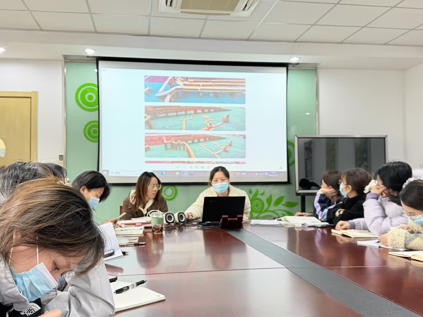 活动中,各年级组教师紧扣本年级项目化活动实践,分享阅读感悟与教学心得,碰撞教育思维火花。小班教师结合“沙子探索”项目,分享了如何借助书籍理念,引导幼儿在沙池游戏中感知材质特性、锻炼动手能力;中班教师围绕“高架桥、东方之门搭建”项目,探讨了阅读带来的启发——如何将本土建筑文化融入搭建活动,培养幼儿空间认知与创造力;大班教师则结合“棚子搭建”项目,交流了基于书籍指导,在活动中培养幼儿团队协作、问题解决能力的实践经验。