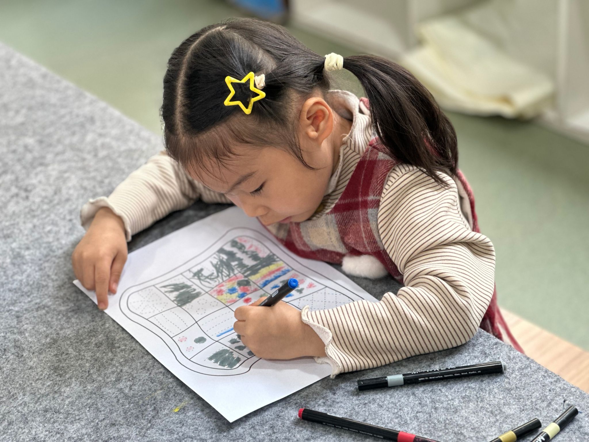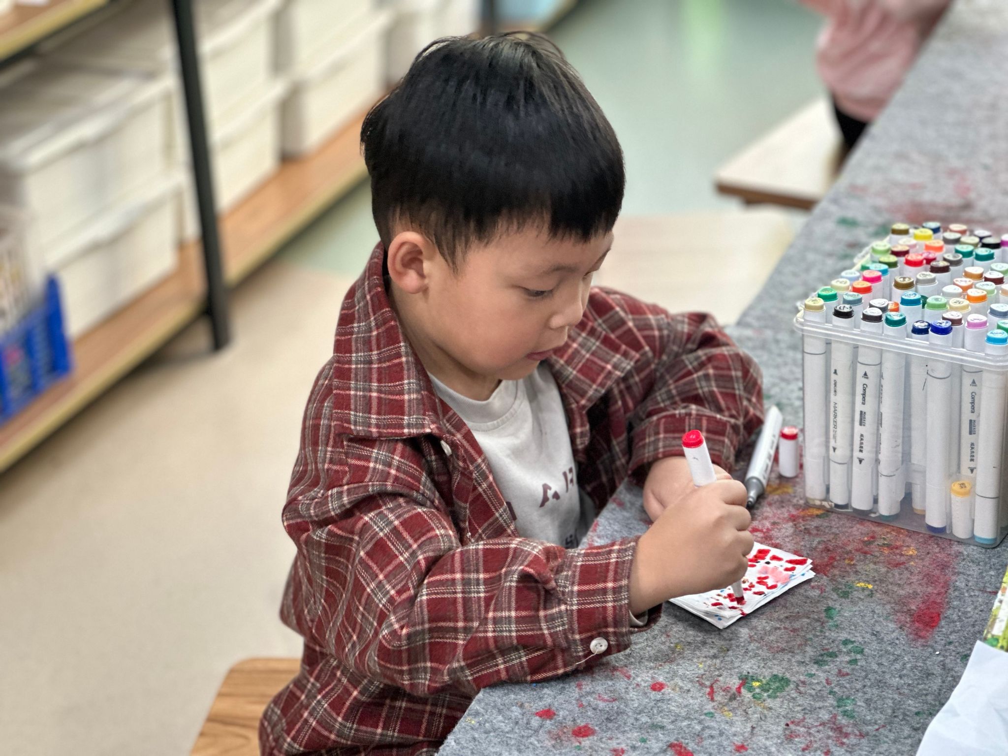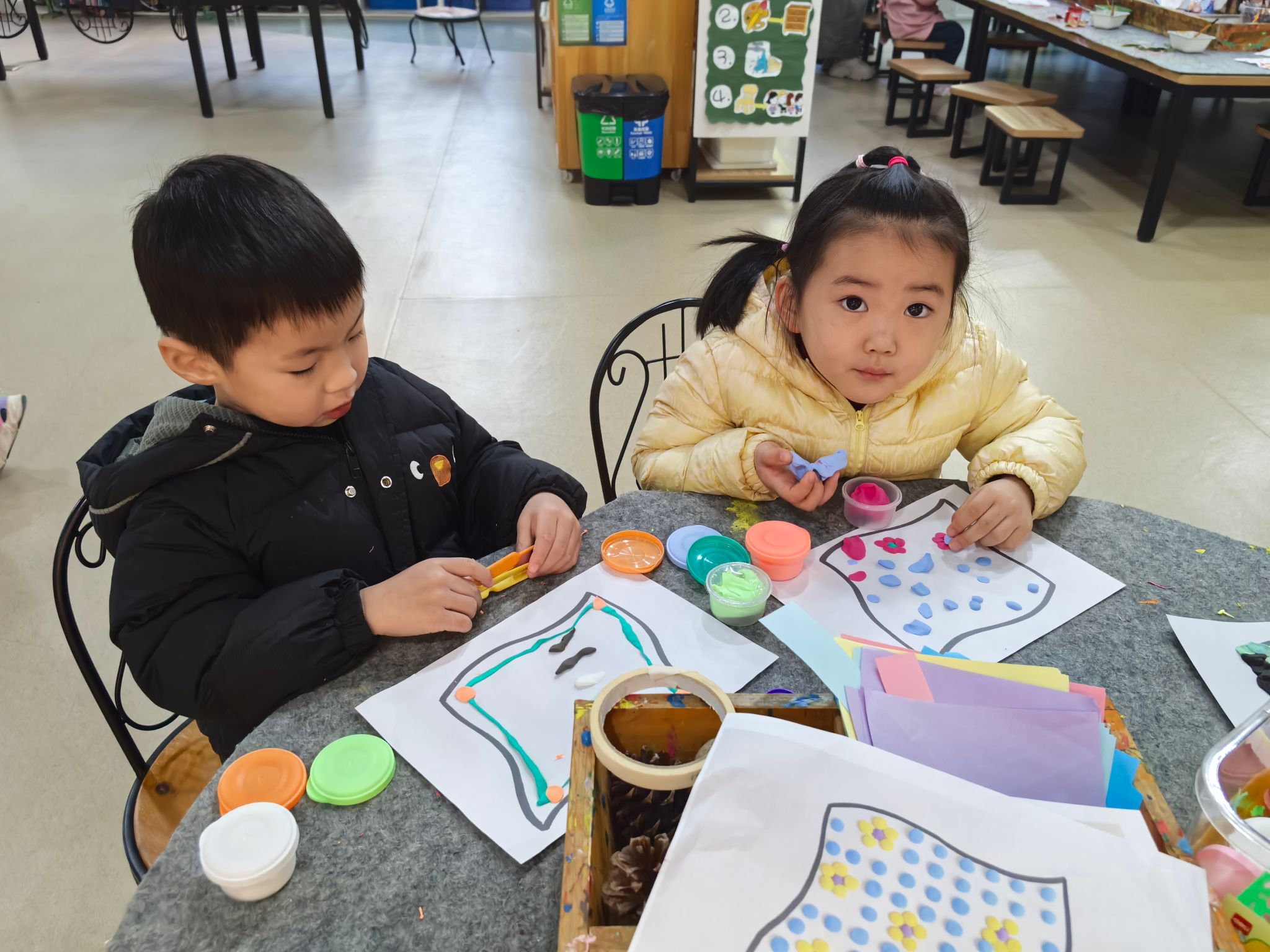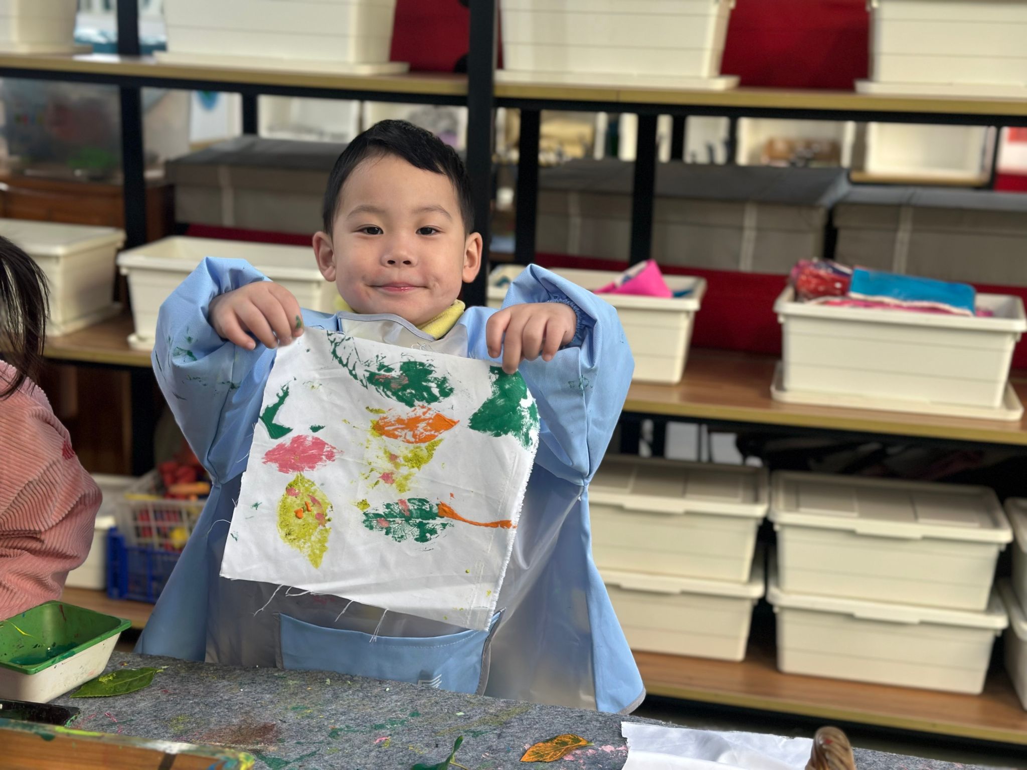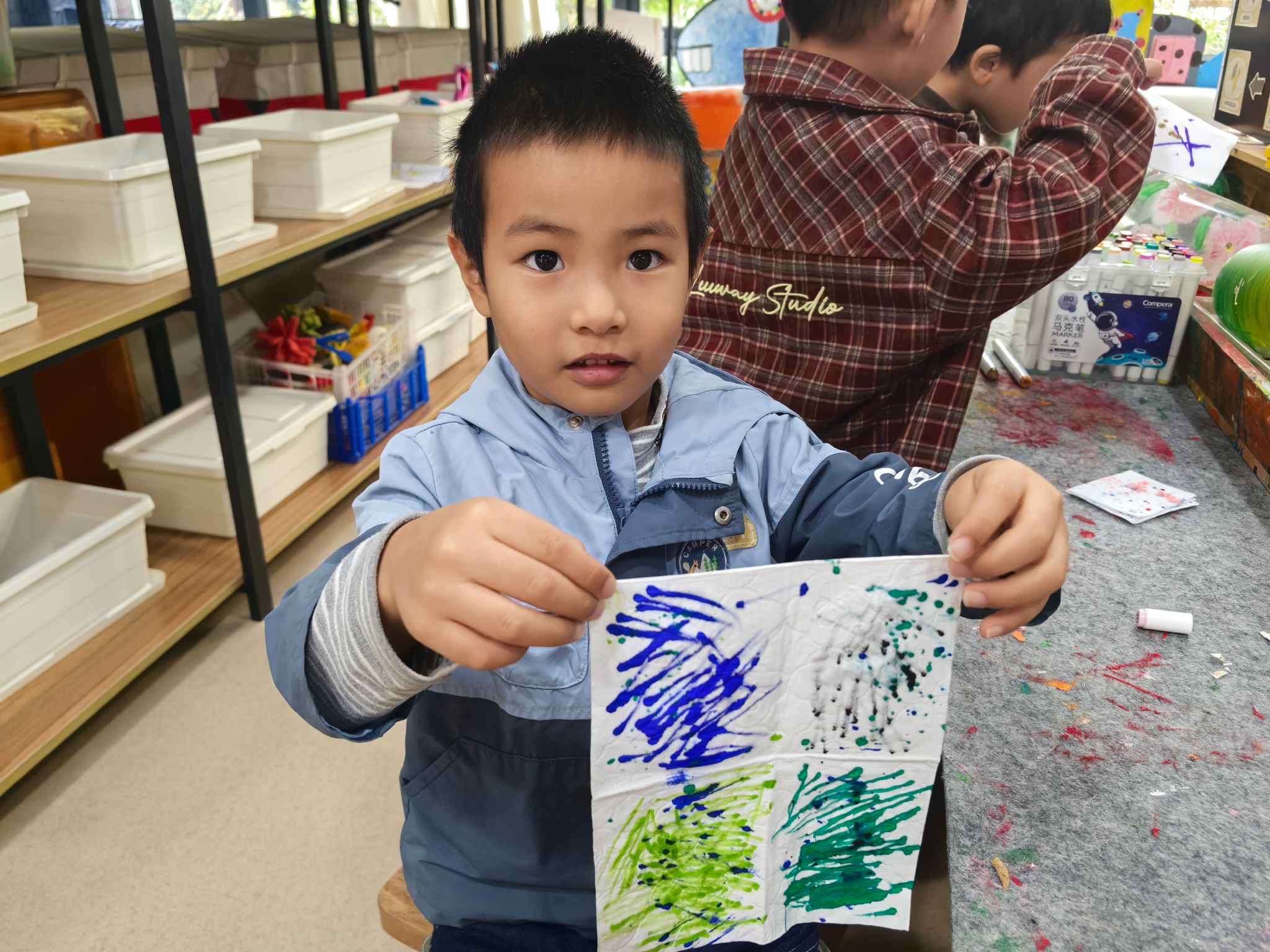 在充满艺术氛围的毕加索创意工坊里,小朋友们化身小小艺术家,沉浸式体验多元手帕创作游戏:用柔软黏土随心塑形,在手帕上点缀出立体可爱的创意图案;采集自然里的斑斓树叶,通过印染工艺留下独特的叶脉纹理与自然色彩;手握马克笔轻蘸颜料,以抽纸点染的巧妙技法,晕染出梦幻渐变的肌理效果;还能拿起画笔自由涂色,用明快色彩勾勒心中的美好画面,在动手实践中感受艺术创作的乐趣与成就感~