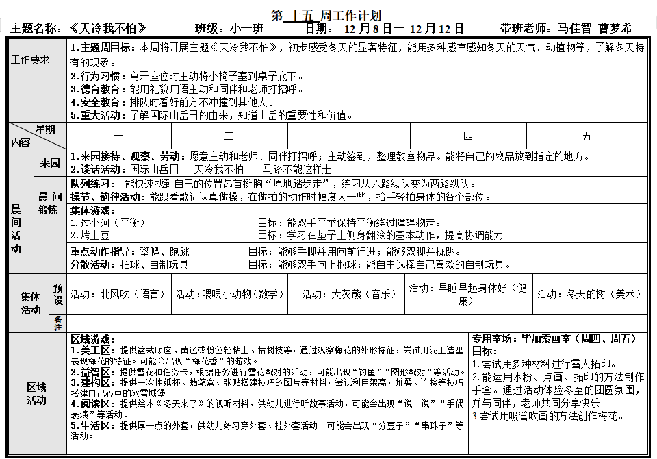 第十五周工作计划