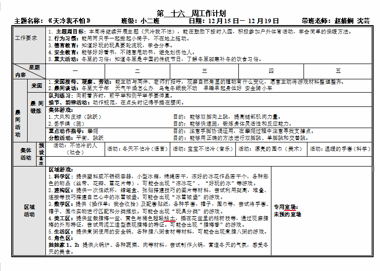 第十六周周计划
