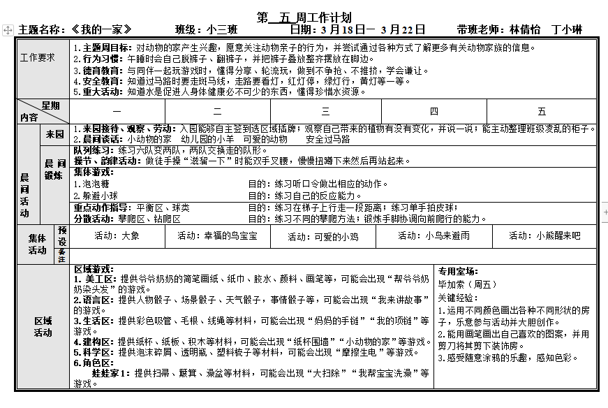 第五周周计划