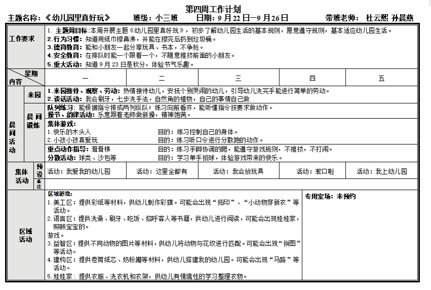 第四周周计划(9.22-9.26)