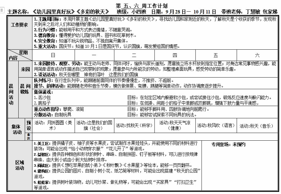 第五、六周工作计划