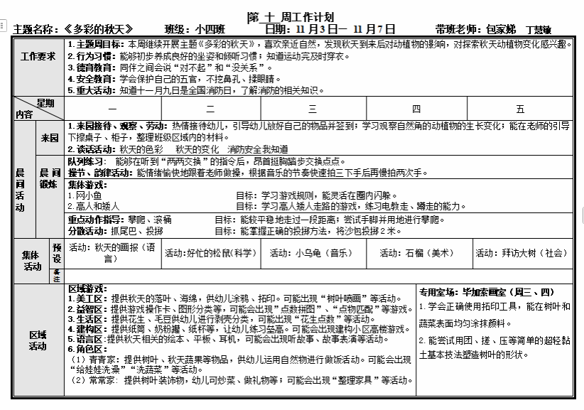 第十一周工作计划