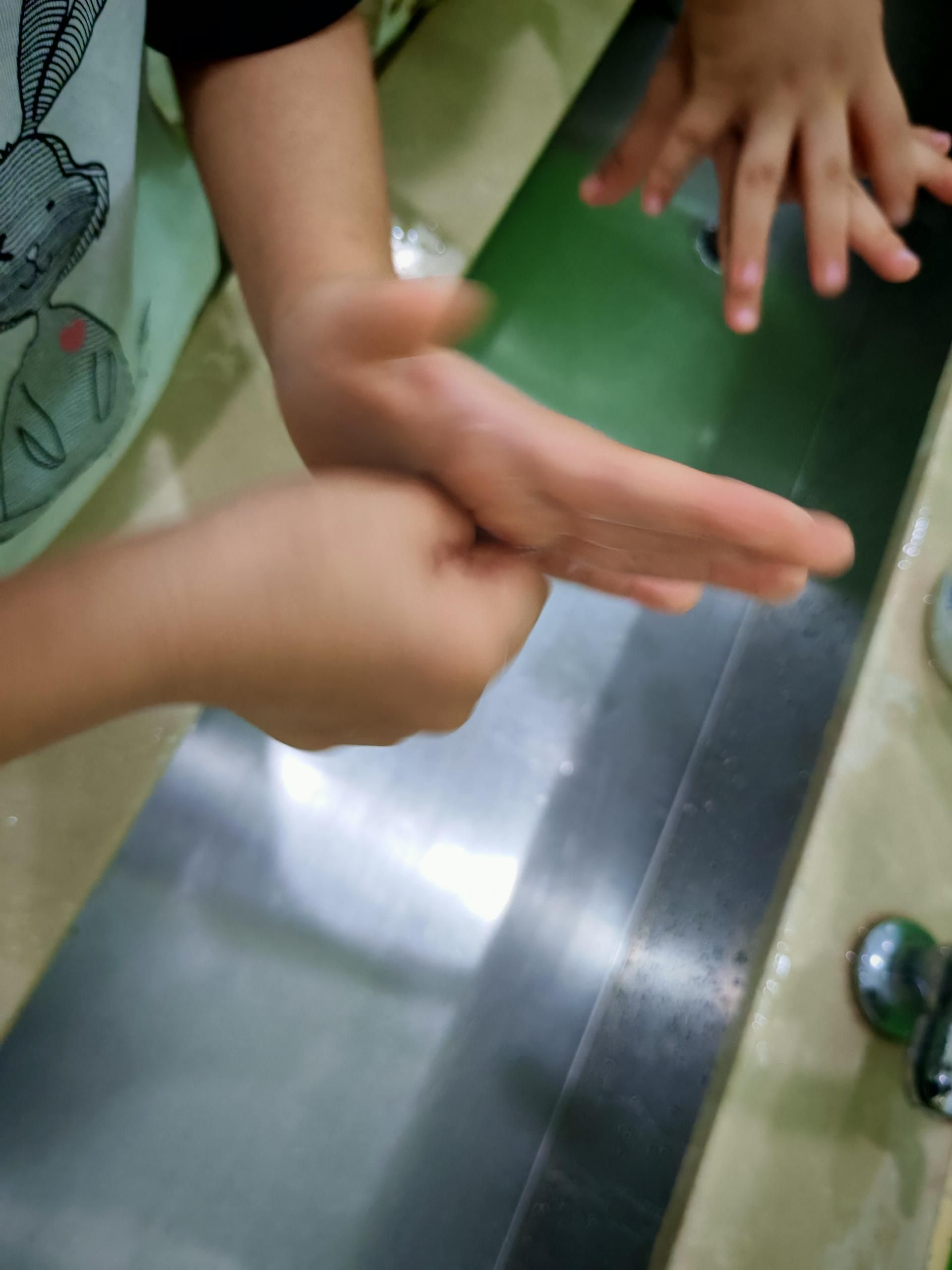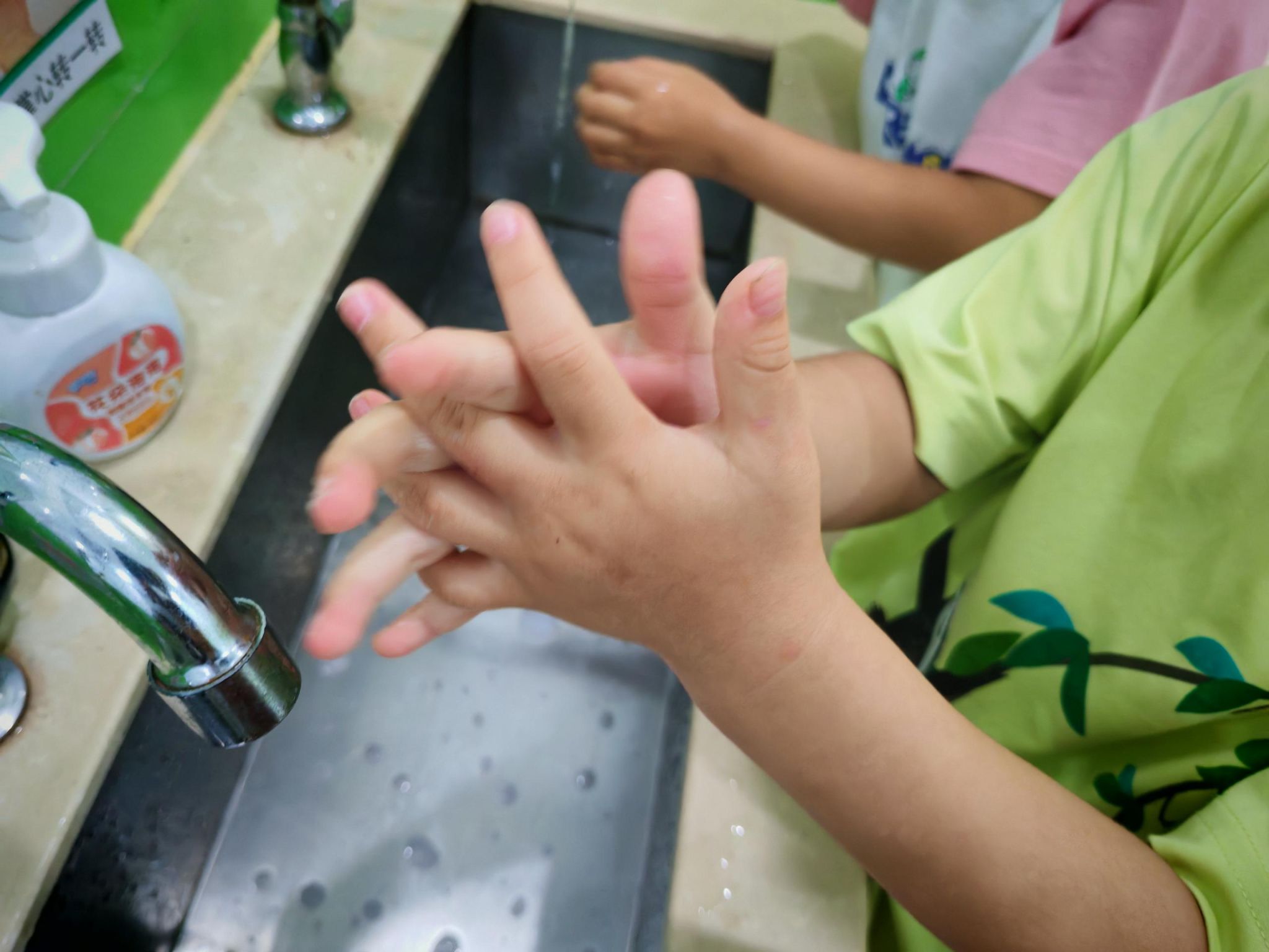 经常有小朋友洗手的时候不用洗手液,还有只用水冲到手指头就算洗了手。