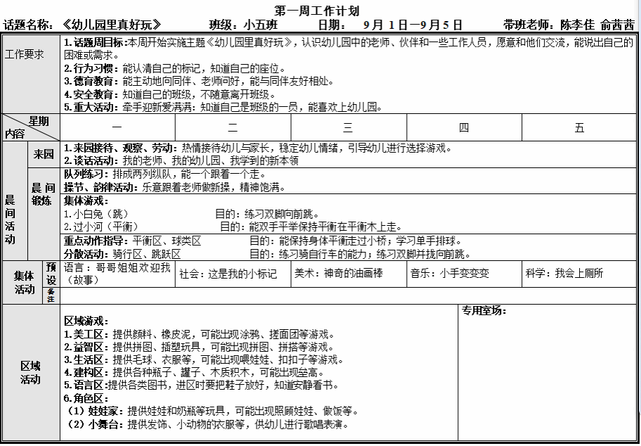 第一周工作计划