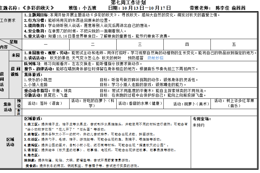第五、六周工作计划