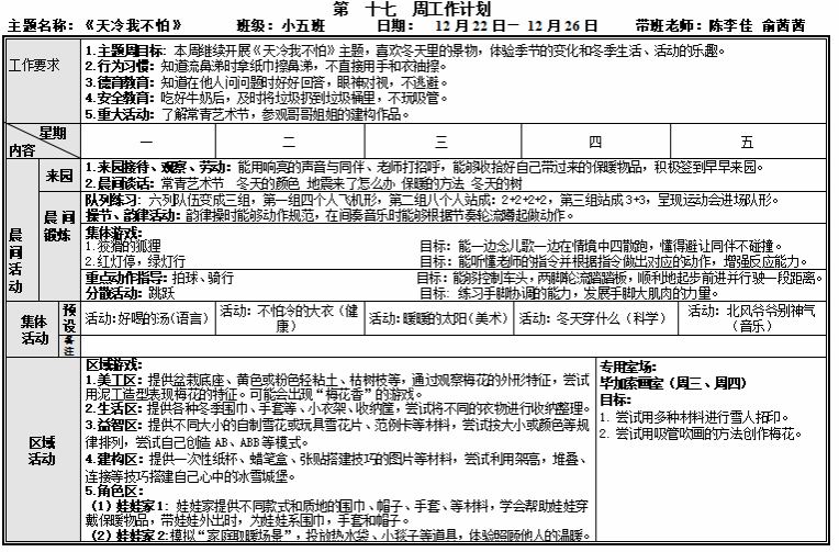 第十七周工作计划