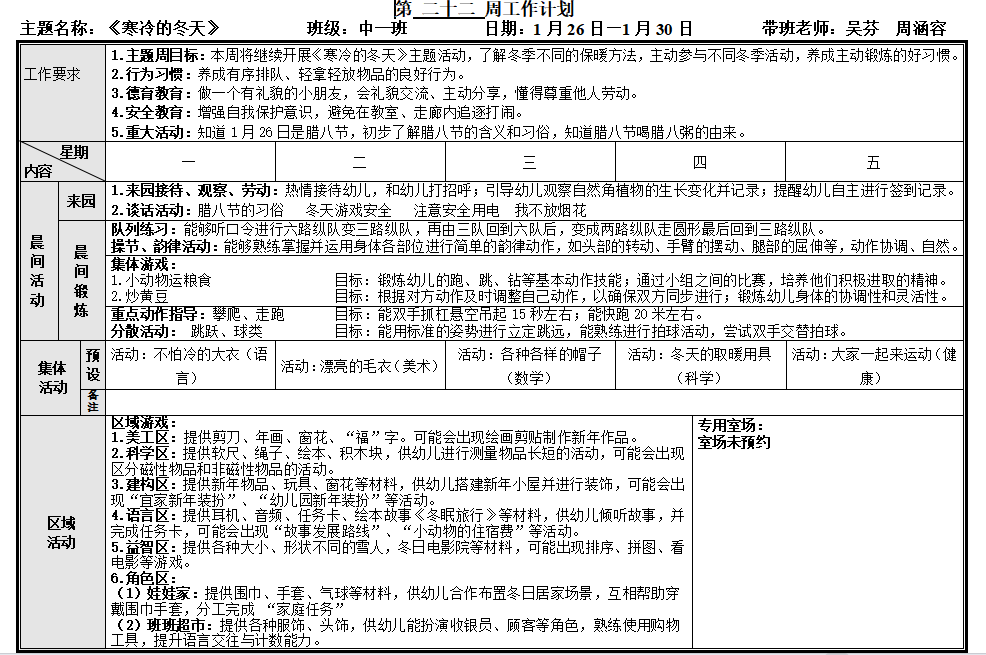 第二十三周工作计划