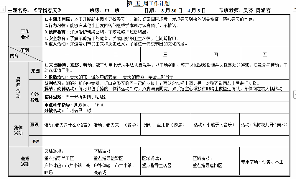 第五周工作计划