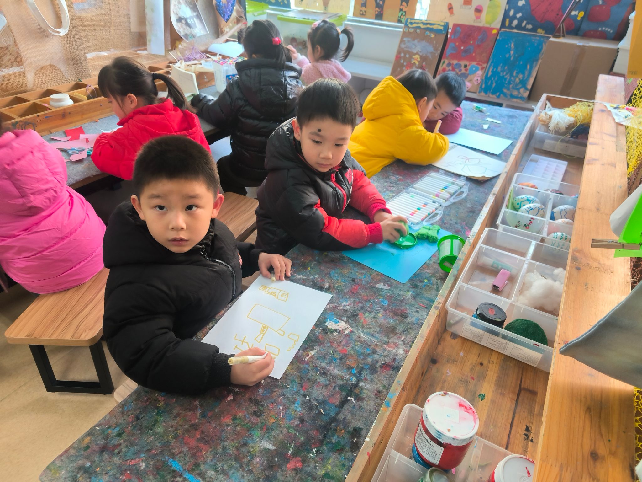 创意美术室里则是另一番缤纷景象,