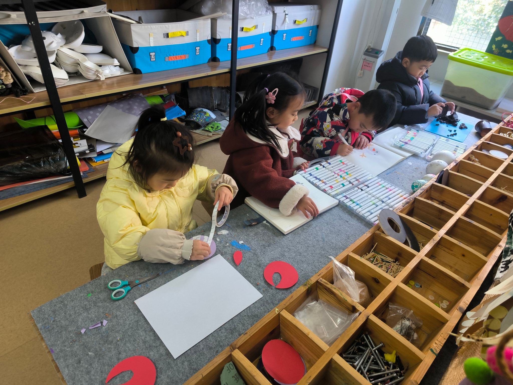 用颜料、彩纸、黏土等材料自由创作