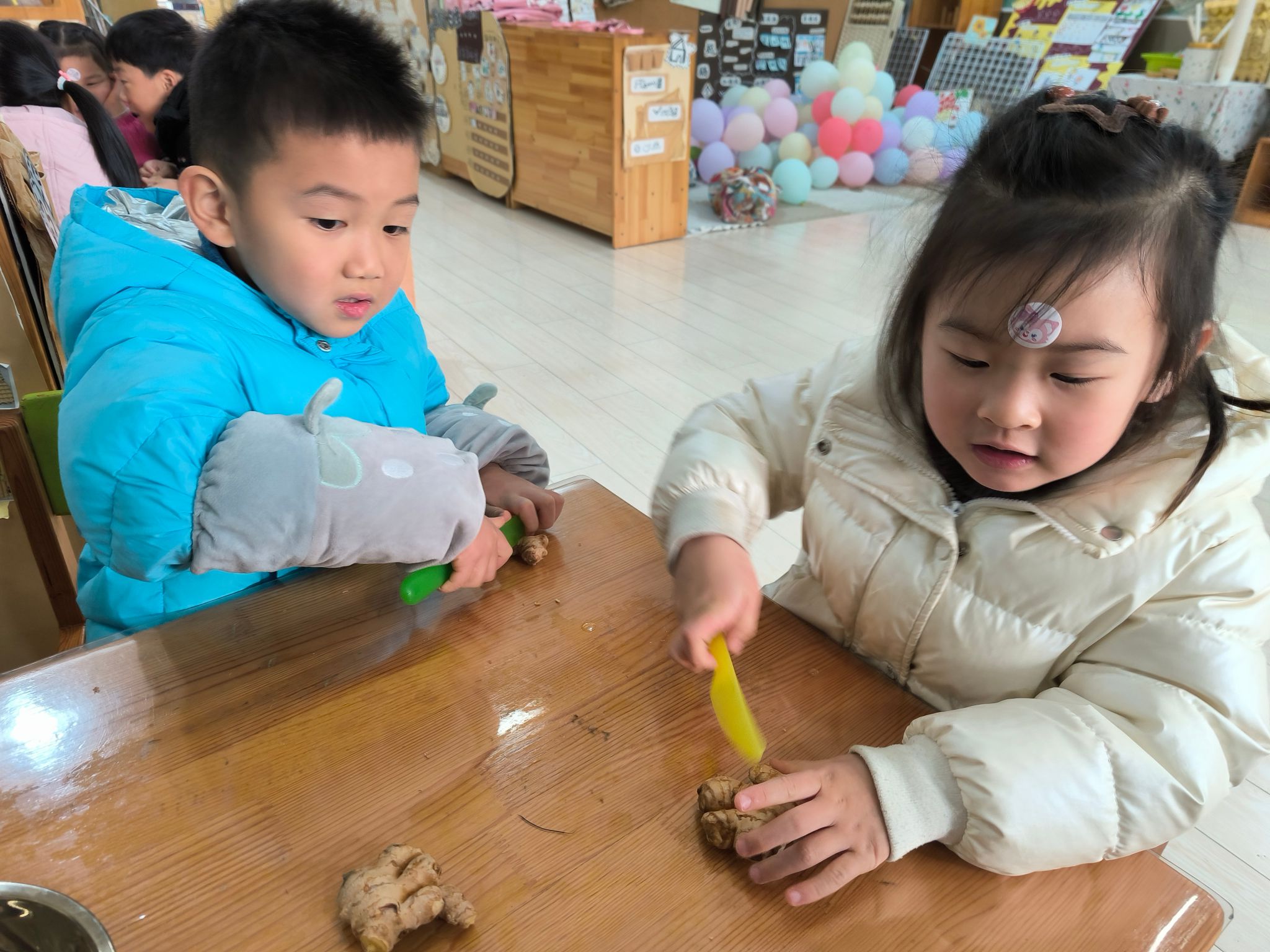 大家一起洗一洗生姜、红枣呀