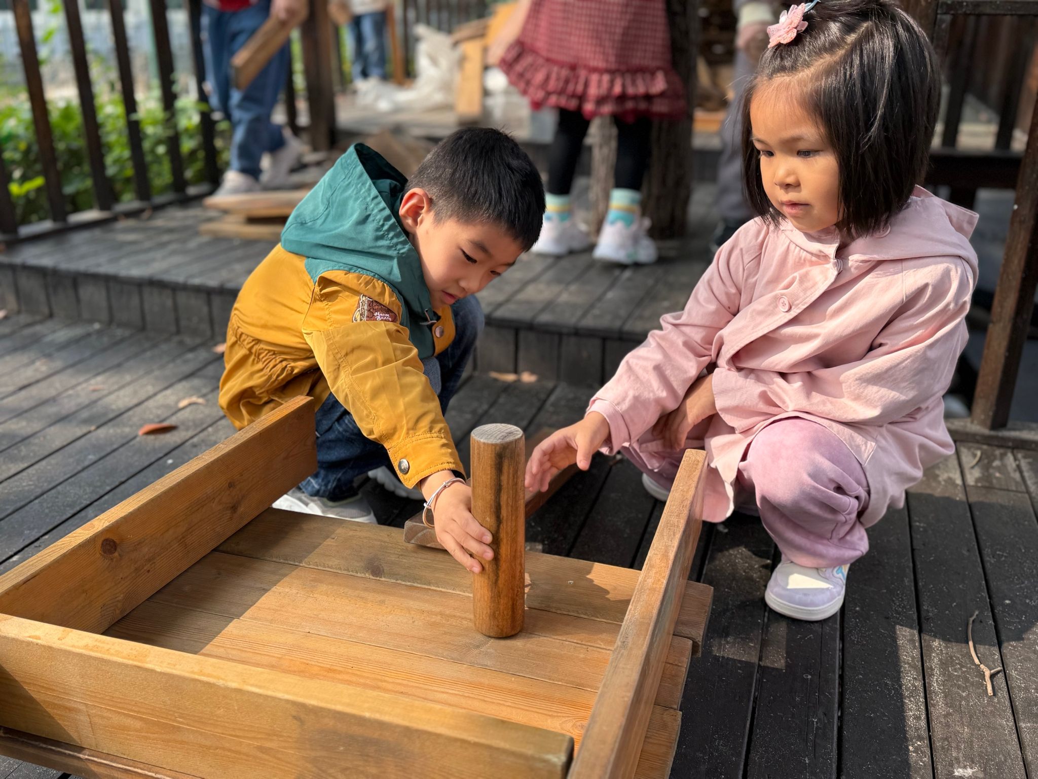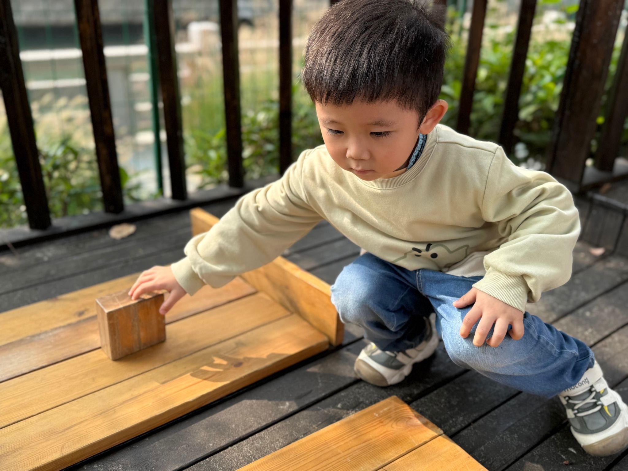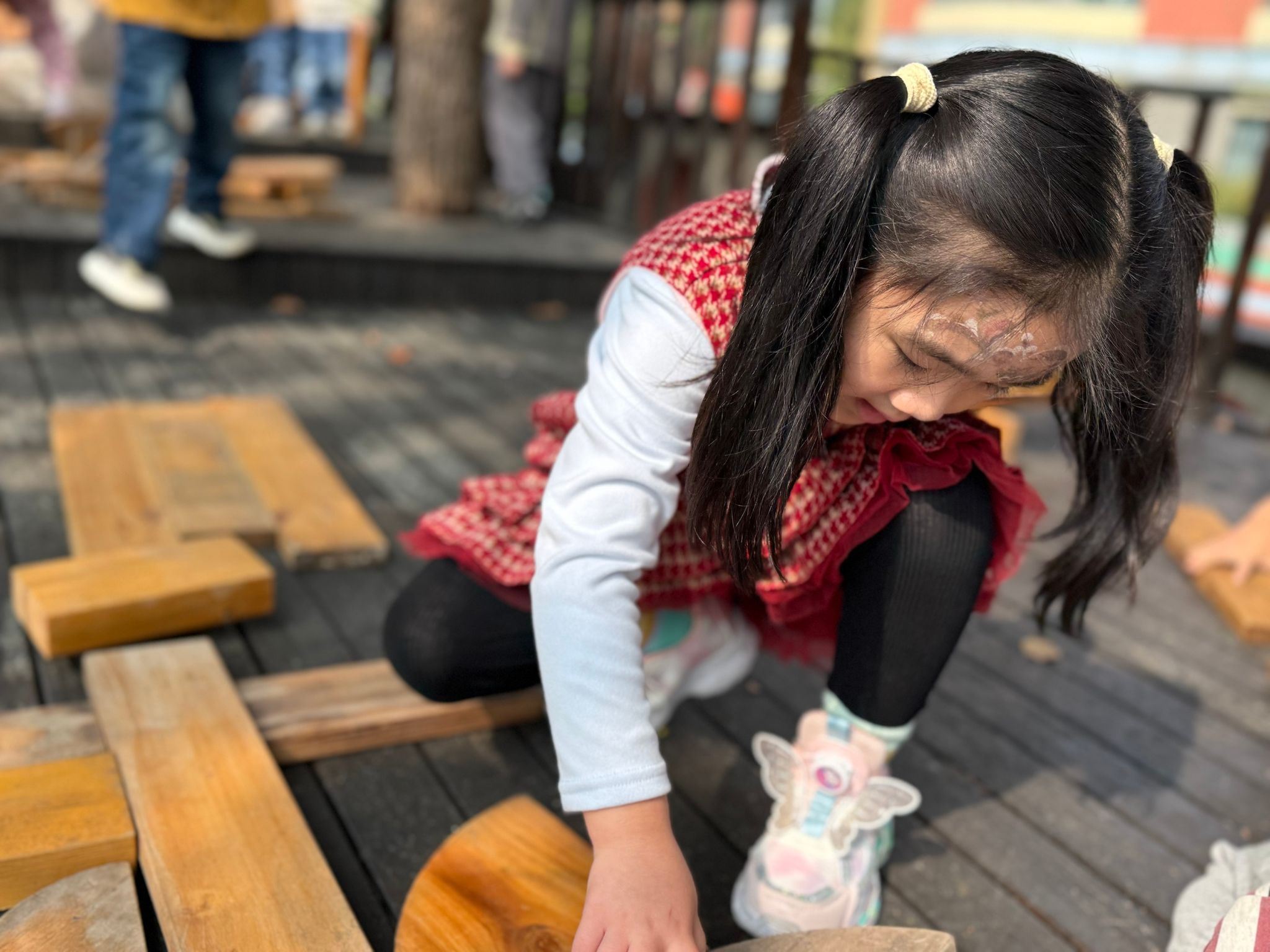 班级里的建构区已经不能够满足我们施展建构的技能了,户外的宽敞的场地更适合我们搭建秋天的乐园。