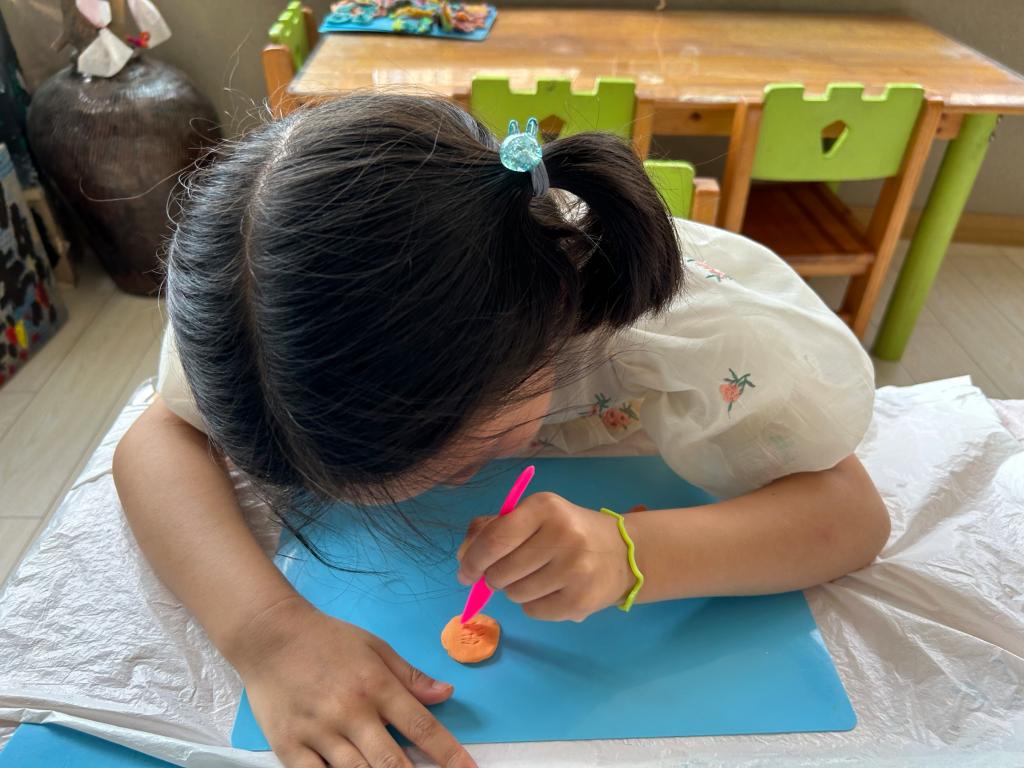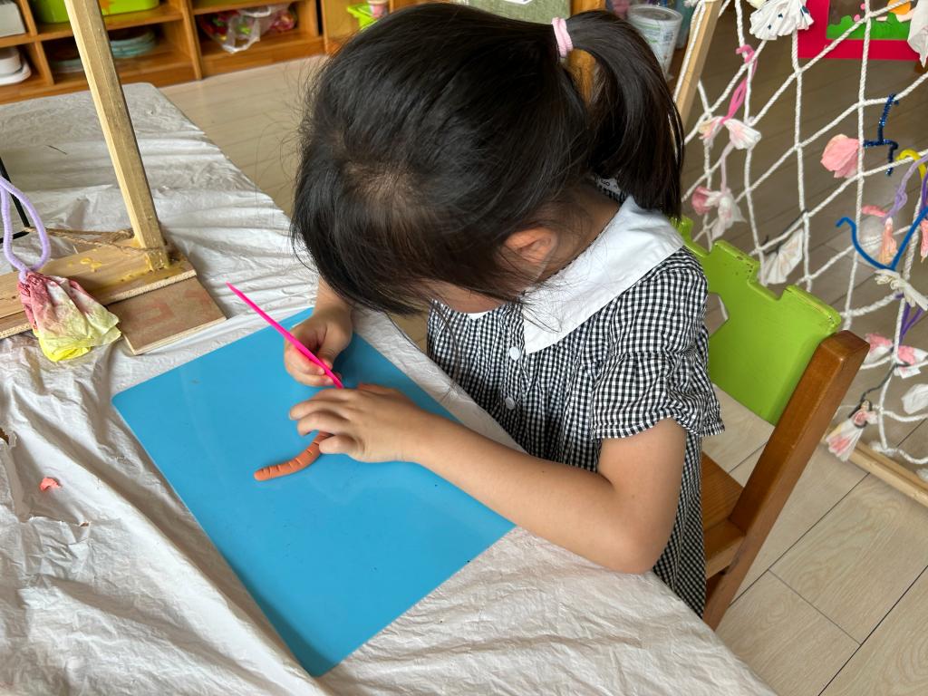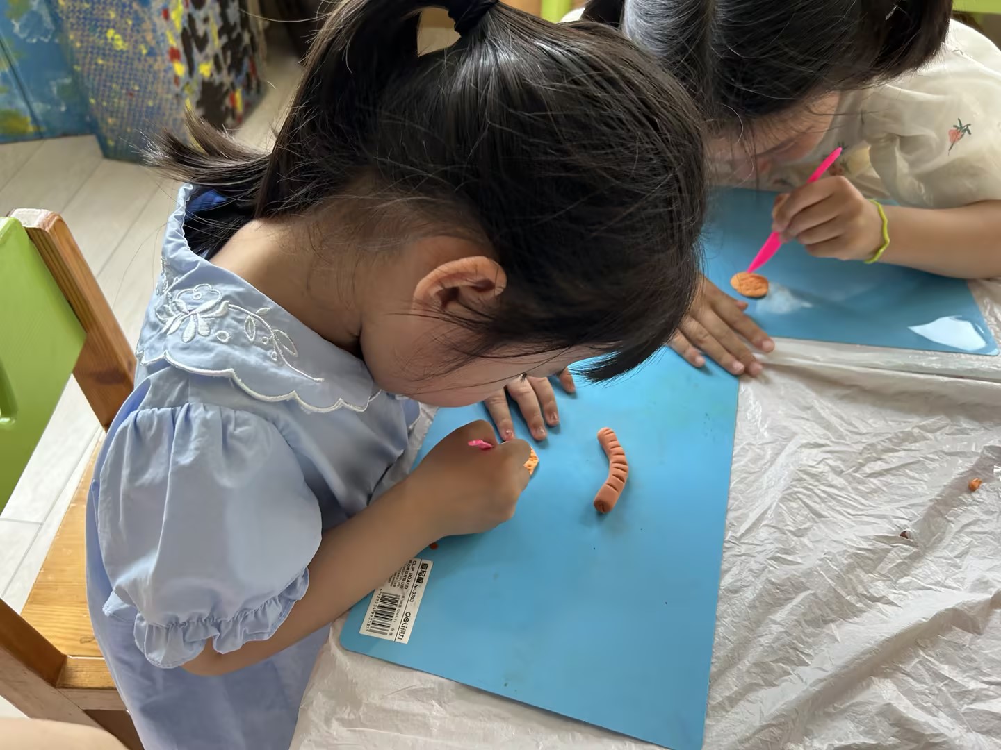 今天,我们一起到花房散步的时候发现桃树上有一只黑色的虫子在攀爬,虽然很害怕,但我们还是好奇地观察了起来,除了蚊子、苍蝇和七星瓢虫,这是我们见到的第一个不认识的夏季出现的昆虫,它到底是什么虫子呢?我们观察的很仔细,还通过在美工区、建构区动手操作把它的样子展现了出来!