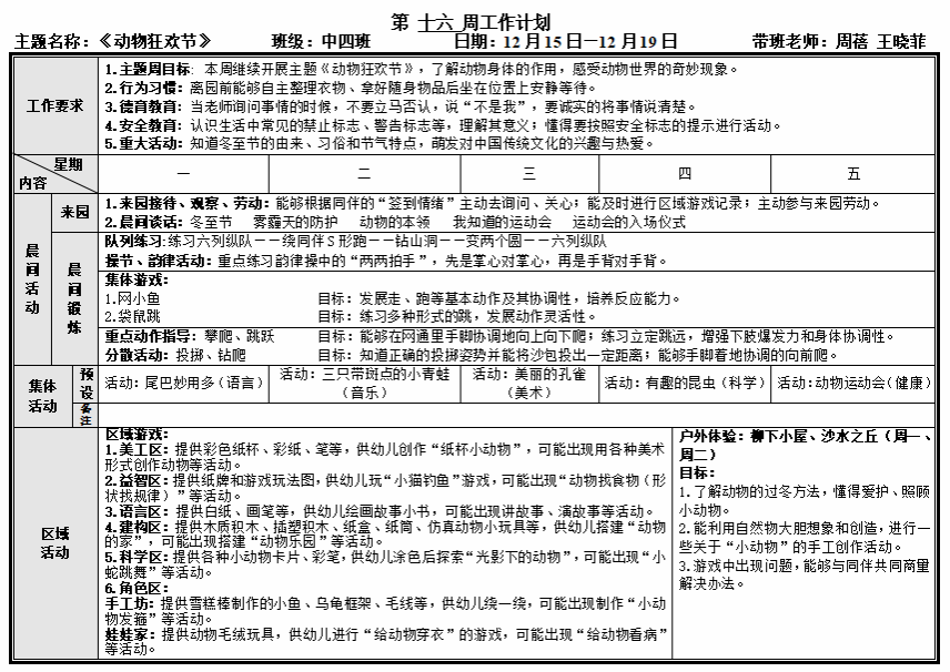 第十六周工作计划