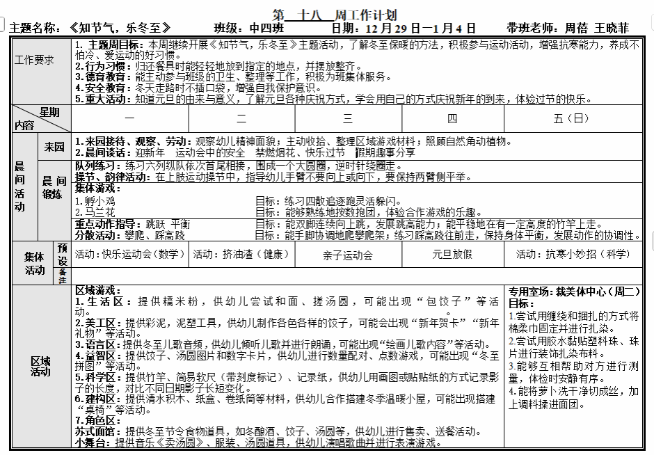 第十八周工作计划