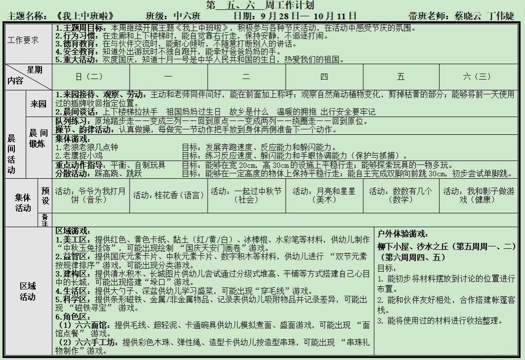 第五、六周周计划
