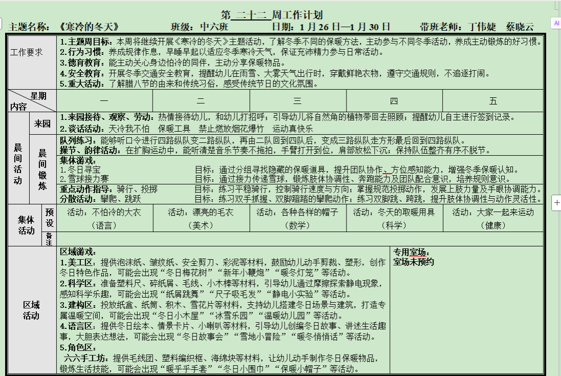 第二十三周周计划