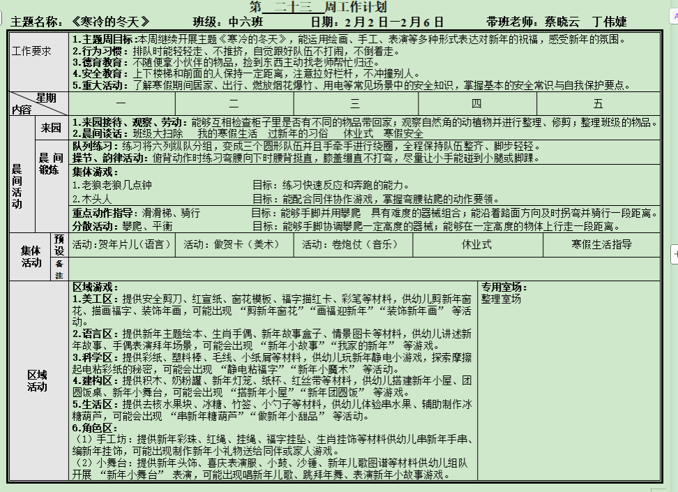 第二十三周周计划