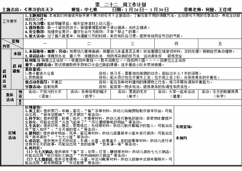 第二十二周周计划