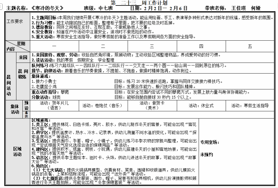 第二十三周周计划