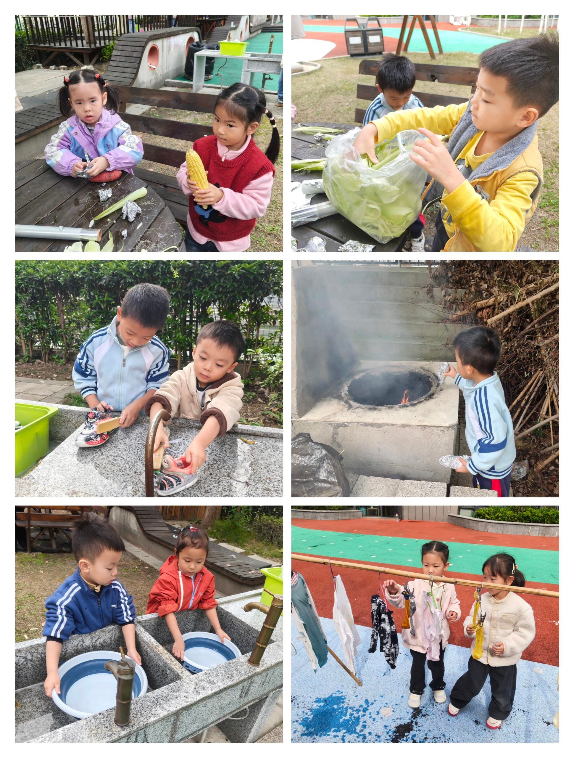 今日份快乐加载完毕!宝贝们在市井小镇和洗晒场开启了沉浸式体验~ 有的搭起帐篷,化身秋日露营小达人;有的用积木搭建专属农场,勾勒丰收图景;锡纸包裹的红薯玉米,藏着亲手制作美食的乐趣;还有的小伙伴分工合作,洗衣晒袜、认真刷鞋,解锁生活小技能!在游戏中探索,在合作中成长,这就是童年最鲜活的模样呀!