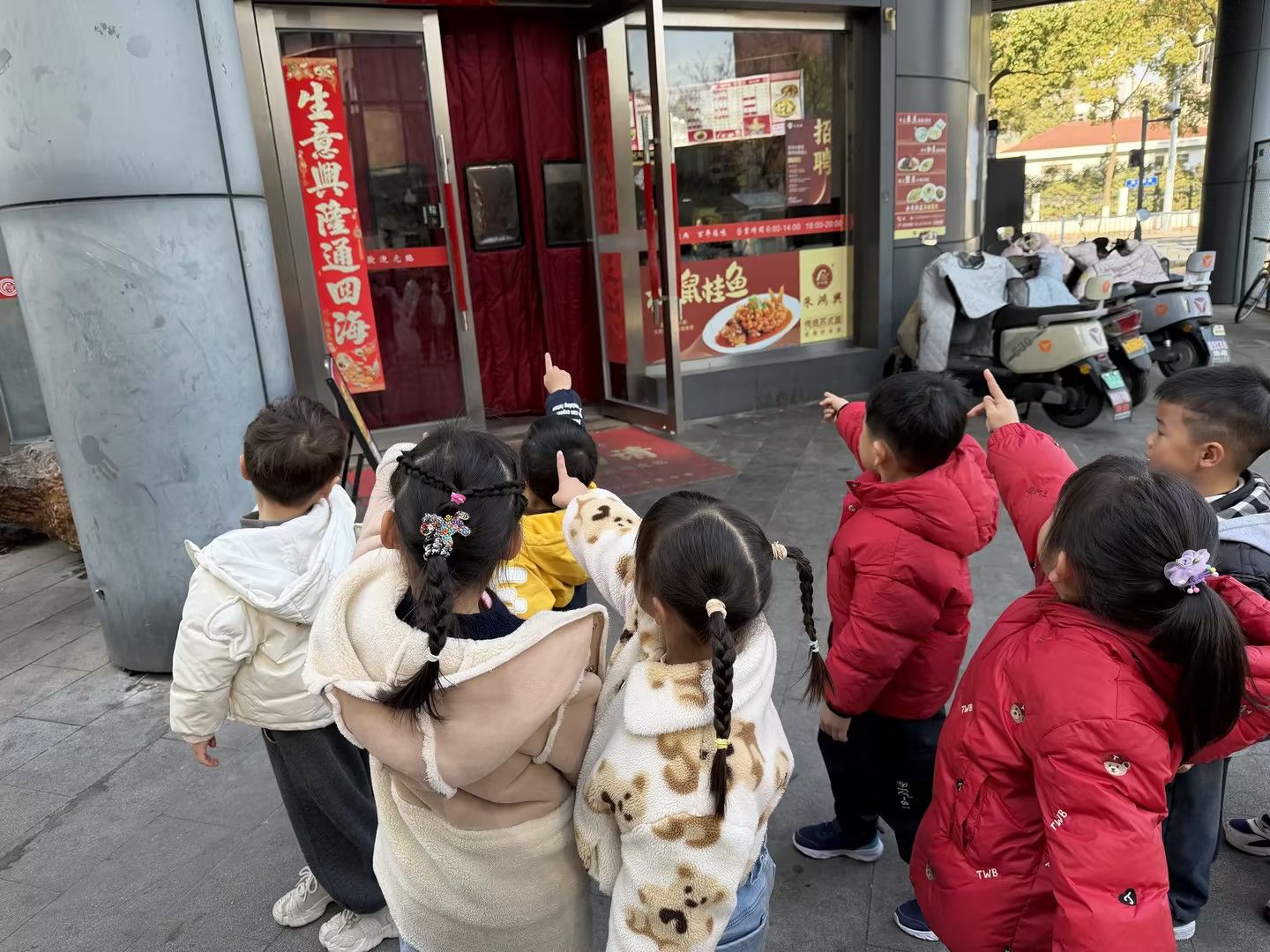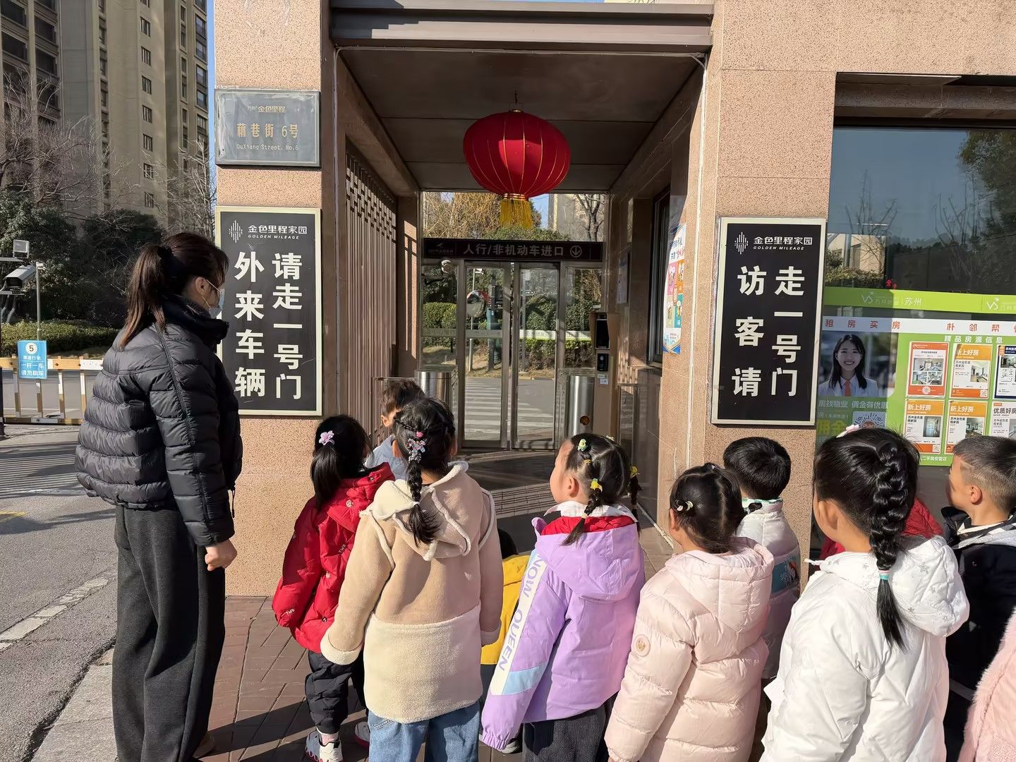冬日的暖阳洒在社区的街道上,中八班的宝贝们化身“年味小侦探”,开启了一场热闹的社区寻味之旅!从熟悉的小区里,红彤彤的灯笼挂在单元楼门口,喜庆的春联贴在住户门前,孩子们踮着脚尖认读春联上的吉祥字,小手轻轻指着灯笼上的花纹,叽叽喳喳分享着自己的发现;走进银行,大厅里的新春装饰格外亮眼,红彤彤的中国结搭配着精致的灯笼,宝贝们凑在一起数着灯笼的数量,还跟银行的工作人员问好,感受着公共场所里的年味儿;来到飘香的面馆,门口的春联透着烟火气,老板贴的福字倒着粘在门上,孩子们立刻喊出:“福倒啦!福到啦!”一路上,孩子们用画笔在“发现本”上记录下看到的年味元素,用稚嫩的语言描述着眼中的春节符号。这场行走的年味探索,让中班的宝贝们在真实的生活场景里触摸传统,在欢声笑语中感受春节的热闹与美好,也让传统文化的种子在孩子们心中悄悄发芽~