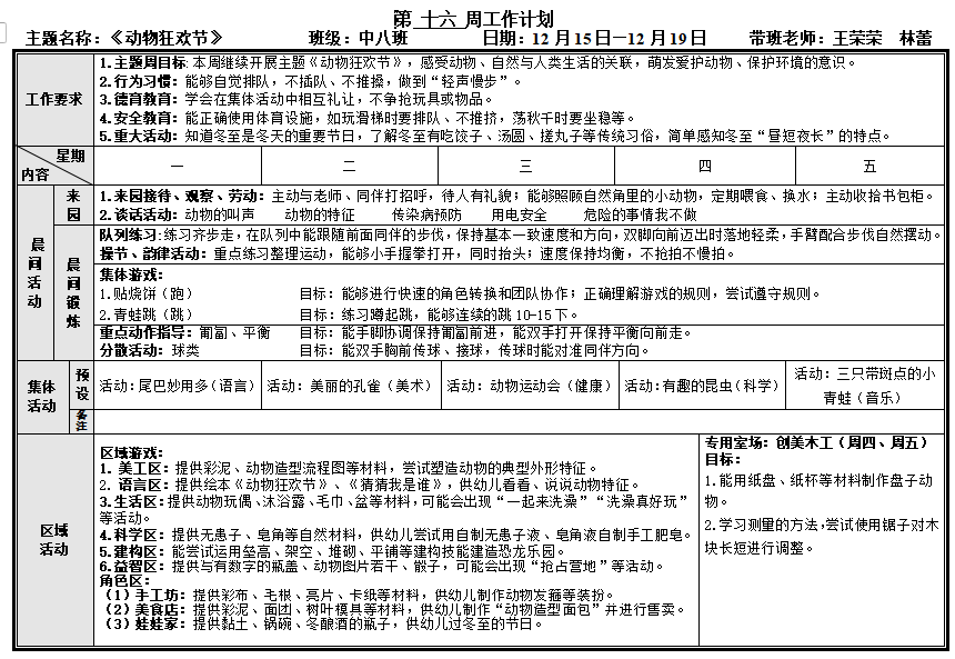 第十五周工作计划