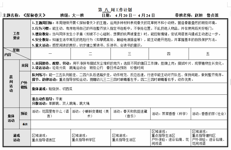 第八周工作计划