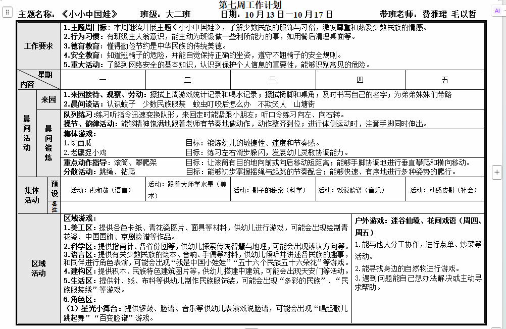 第七周工作计划