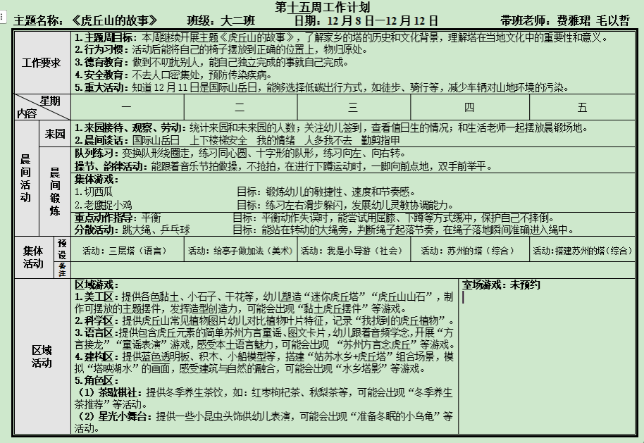 第十五周工作计划