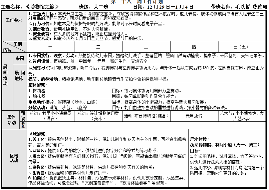 第十八周工作计划
