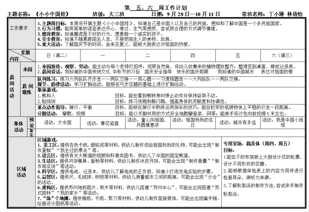 第五、六周工作计划