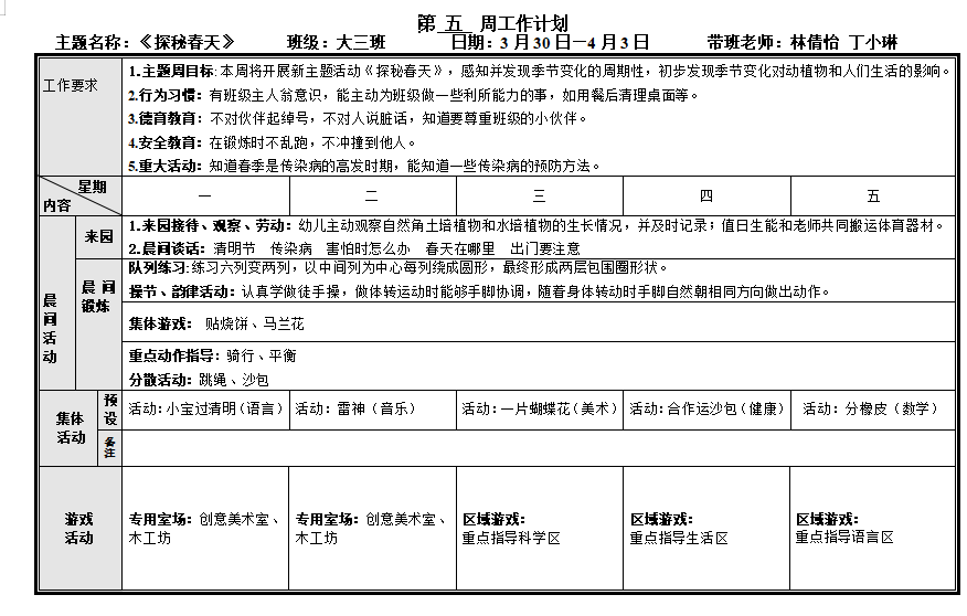 第五周周计划