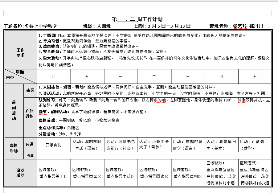 第一、二周工作计划
