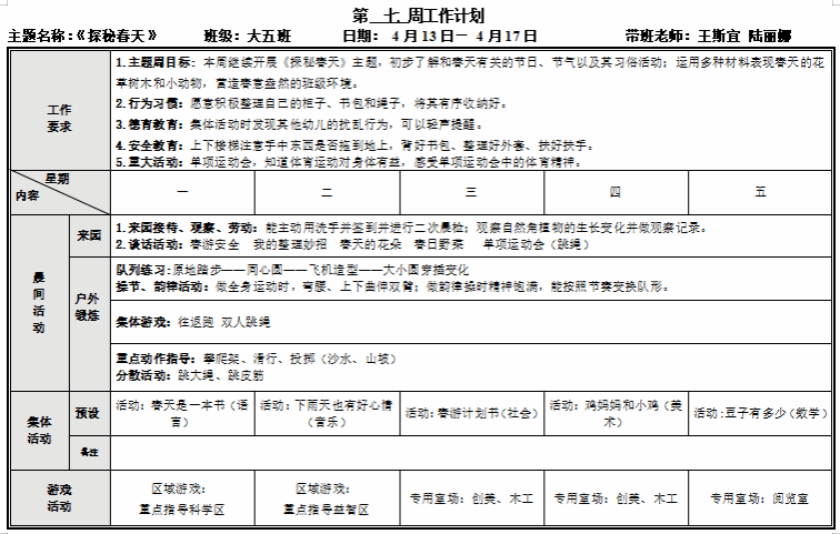 第六周周计划