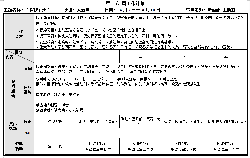 第六周周计划