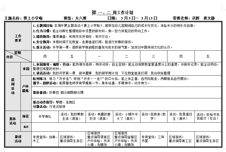 第一周工作计划
