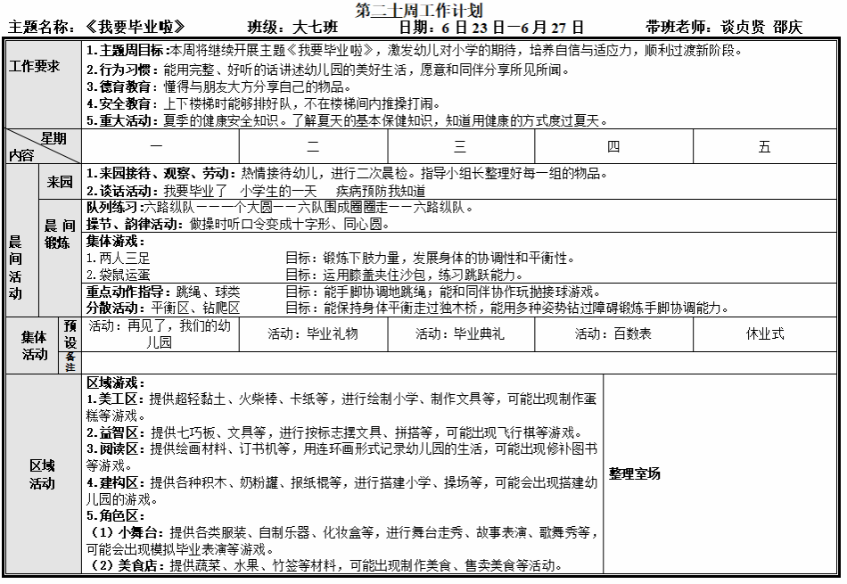 第二十周工作计划